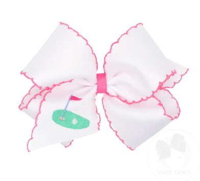 King Grosgrain Hair Bow with Moonstitch Edge Emb