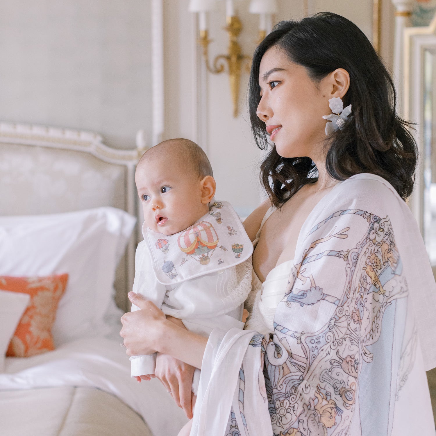 Use a carré to change a baby’s diaper on the go, for swaddling, to wipe a baby’s face, as a tummy time blanket, to protect your shoulder when holding a small baby, or to create some shade or privacy while breastfeeding.