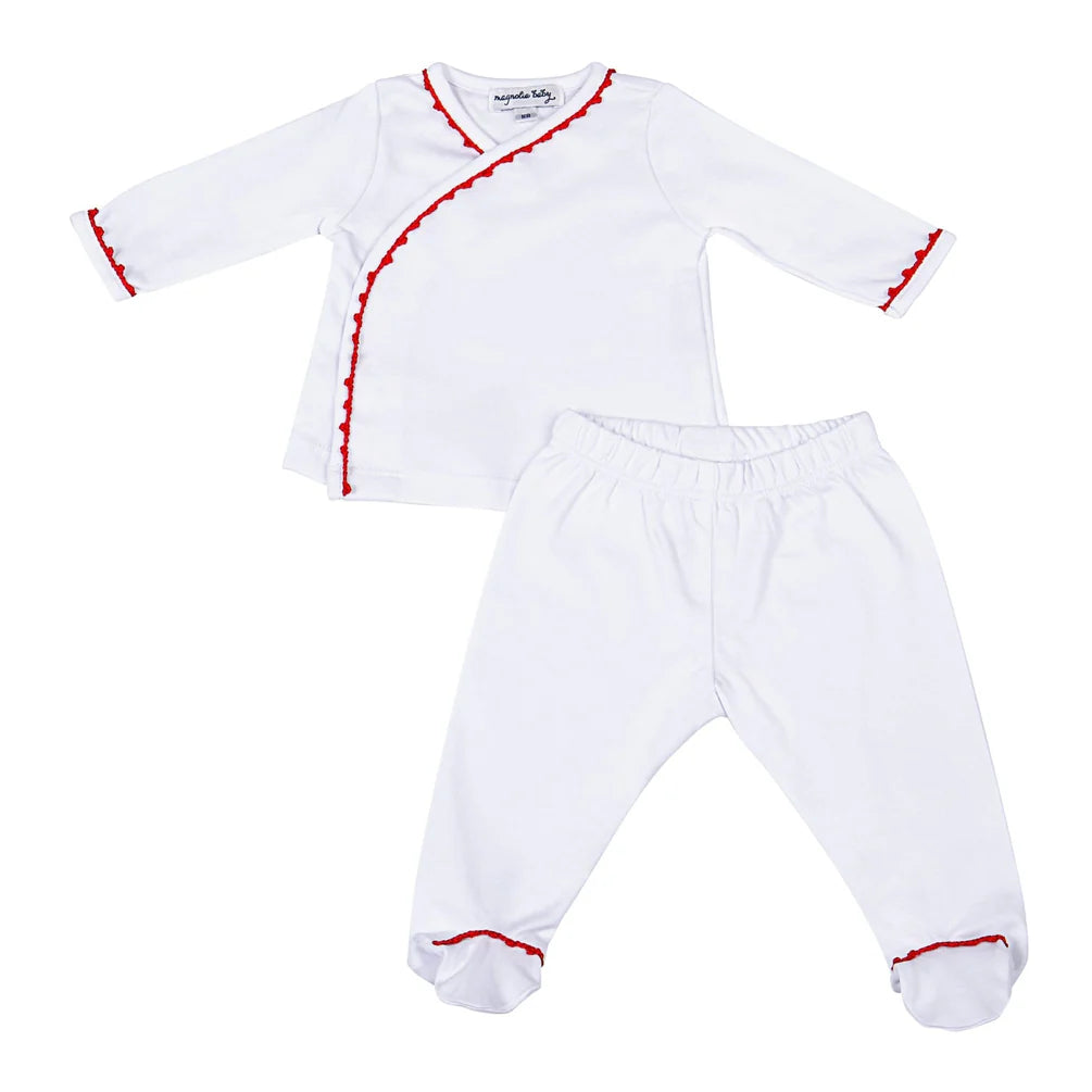 Baby Joy X-Tee Footed Pant Set with Red Crochet Trim