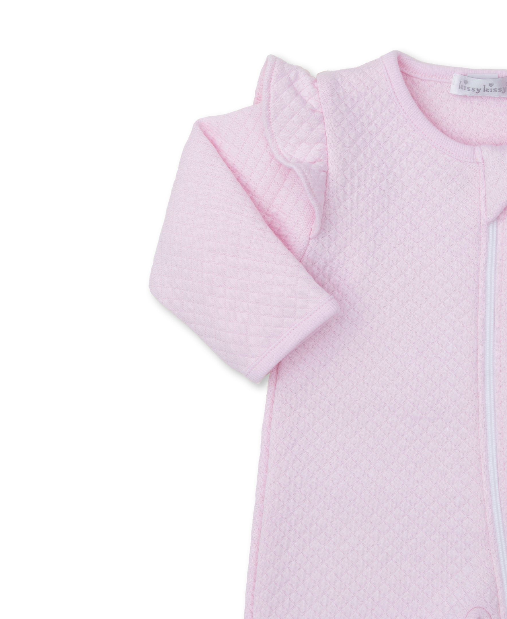 Pink Rose Scrolls Jacquard Footie w/ Zip