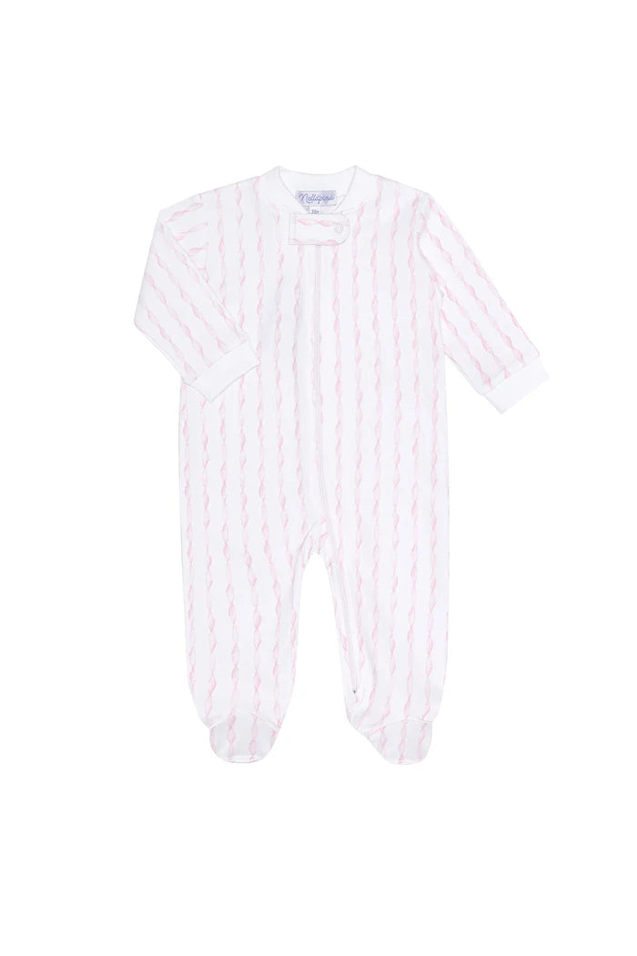 Pink Twirls Zipper Footie