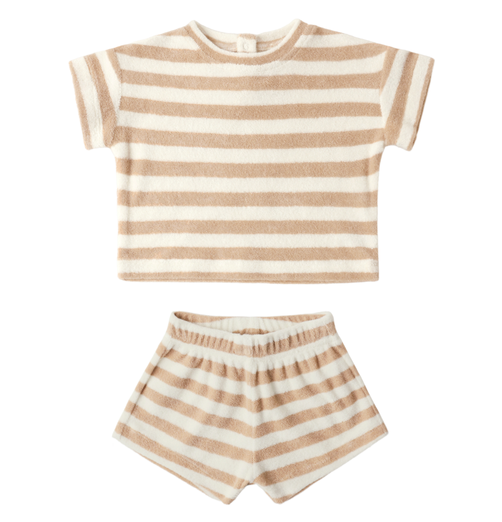 TERRY TEE + SHORT SET | LATTE STRIPE
