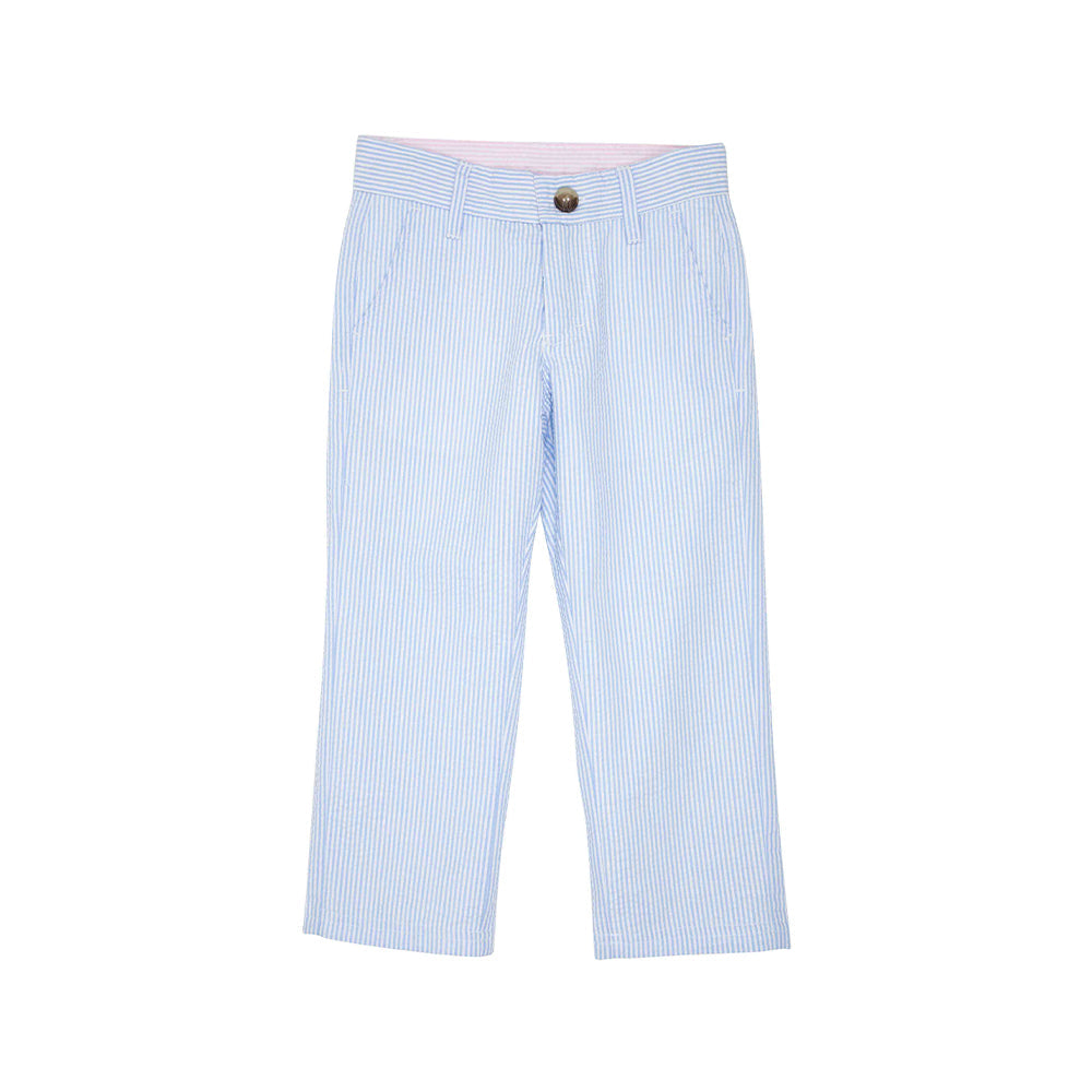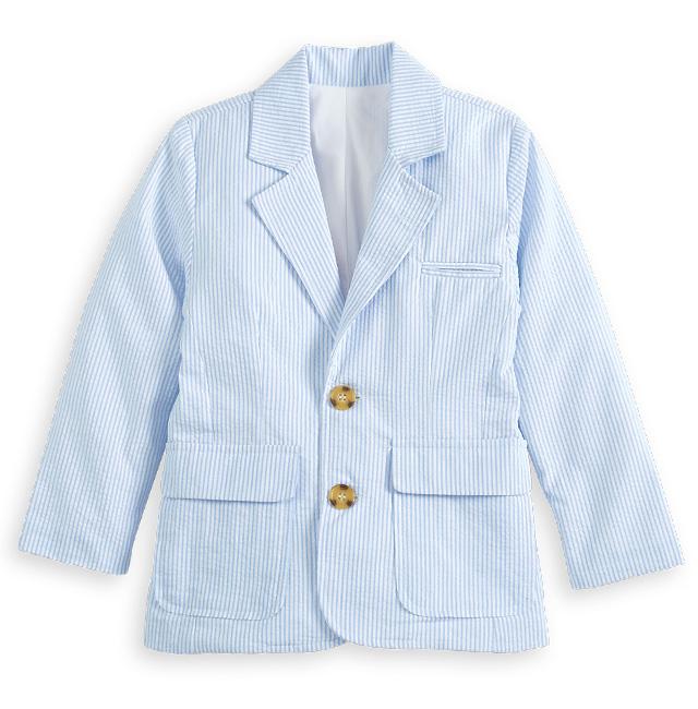 Blue Seersucker Blazer + Faux Zip Pant Set
