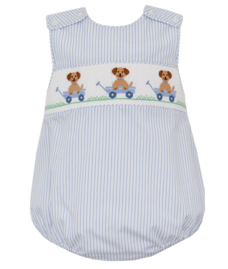 Blue Stripe Button Bubble- Puppies