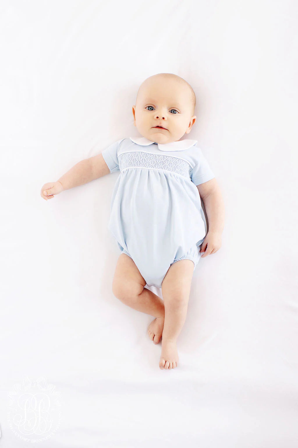 Short Sleeve Banbury Bubble Buckhead Blue with Worth Avenue White Smocking
