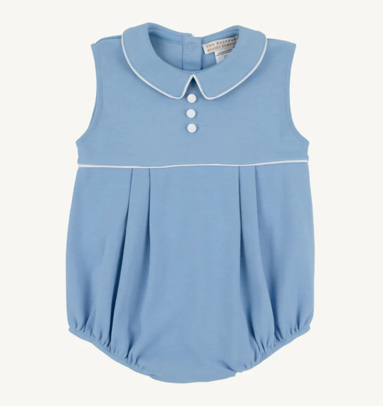 Our Sleeveless Bradford Bubble in Sarasota Sky and Worth Avenue White brings breezy sophistication to your little one's warm-weather wardrobe. The classic silhouette and premium fabric ensure comfort during summer celebrations, beach outings, or everyday adventures while maintaining that polished preppy look. A timeless piece that makes dressing for sunshine effortless.