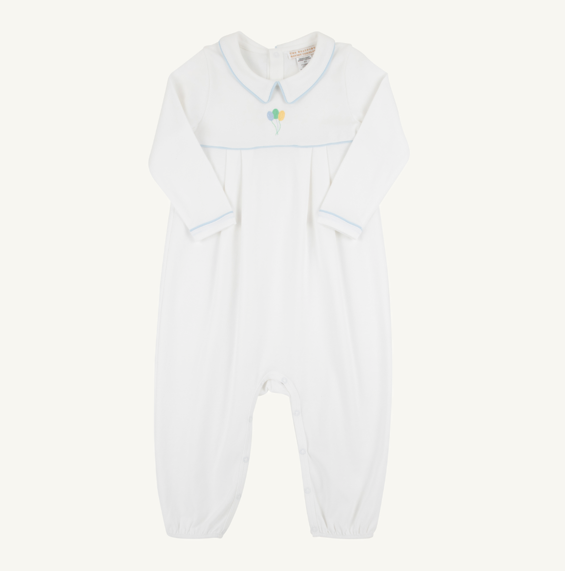 Long Sleeve Collared Bradford Bubble Romper- Worth Ave White Balloon Hearts