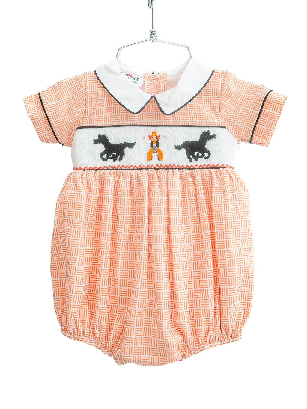 Boys Short Romper w/ Football Applique Pocket- Orange