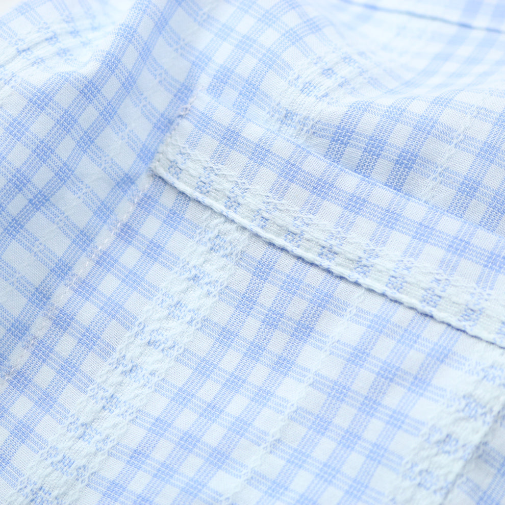 Guayabera - Blue Plaid Linen Short Sleeve Shirt