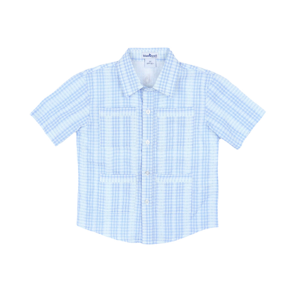 Guayabera - Blue Plaid Linen Short Sleeve Shirt