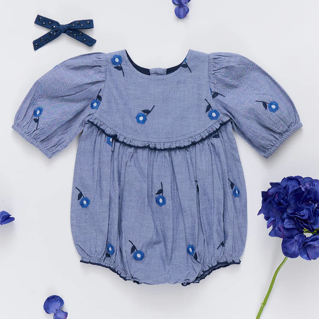 baby girls rowan bubble- blue blossom embroidery