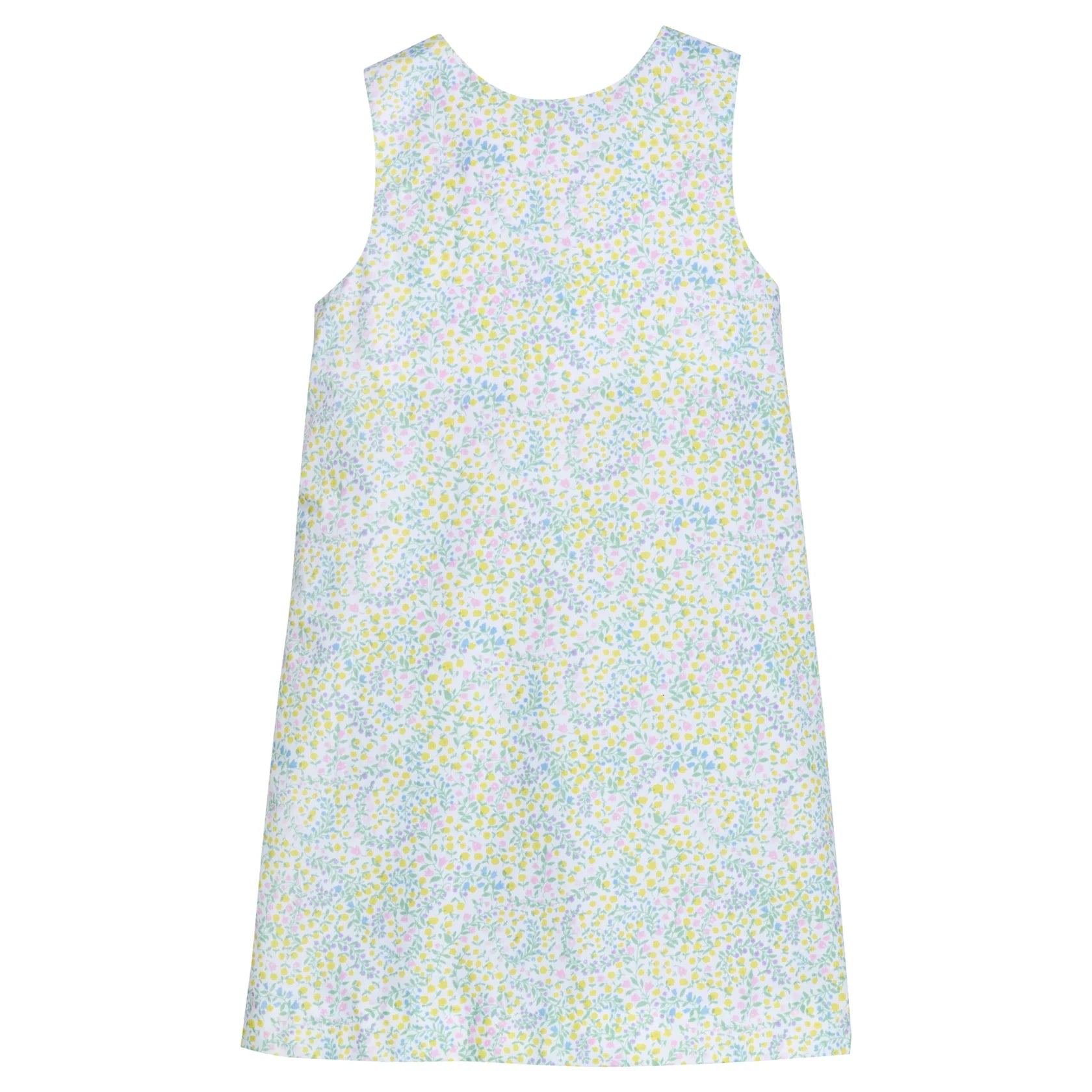 Featuring a simple, sleeveless silhouette and a fixed bow in the back, our Biz Dress - Briarcliff Floral is a sophisticated style for your older girl! The Briarcliff Collection is a bright and cheerful collection featuring a charming blue and green floral with hints of yellow and pink, perfect for Easter celebrations and family photos. With so many sibling matches to choose from, dressing the whole family is a breeze!