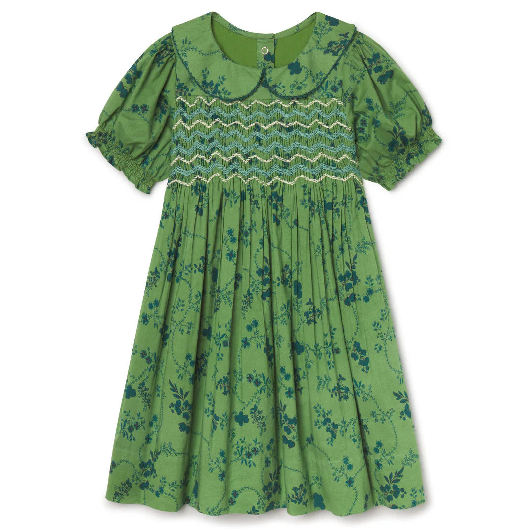 Hand-smocked detailing and a full, twirl-ready skirt make the Emmy Dress a true staple of spring dressing. The Thistle print lends botanical character and vintage polish, creating a silhouette suited for family photos and special outings. Light, breathable cotton ensures all-day comfort while preserving its refined appeal.