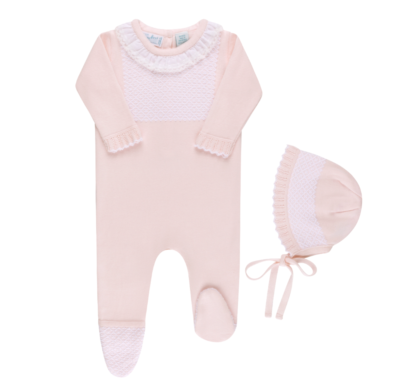 Girls Jacquard Ruffled Knit Romper & Bonnet