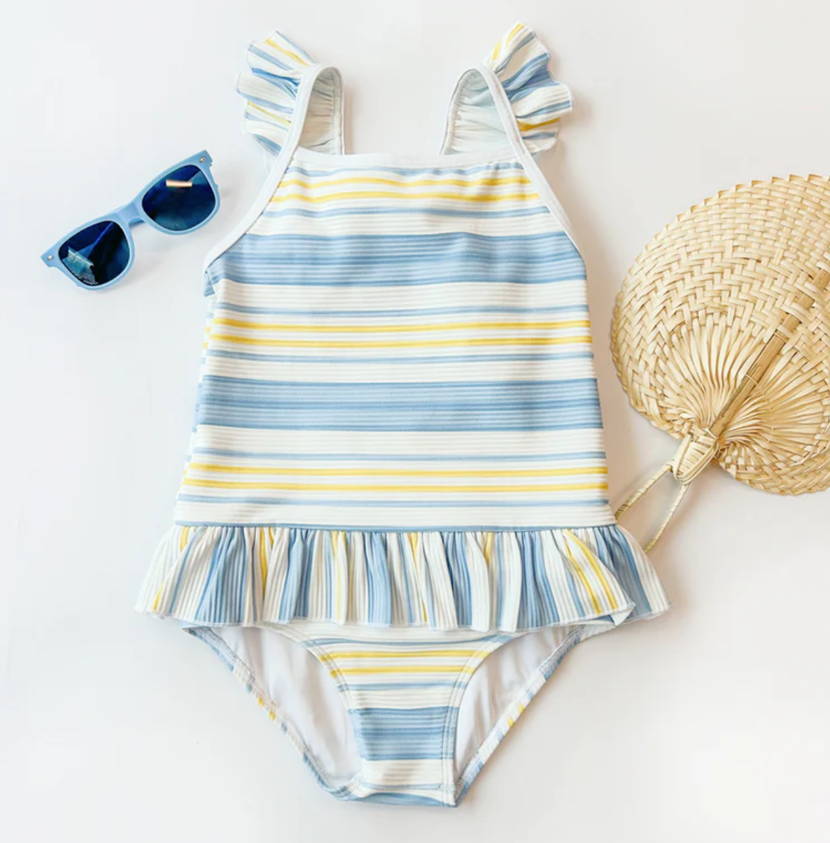 Dive into sunny days with our St. Lucia Swimsuit in Sobro Stripe with Worth Avenue White! Made with a secure fit, this swimsuit is perfect for beach trips, pool parties and seaside adventures. Premium construction ensures it stays beautiful after many times in the water, making it a warm-weather essential!