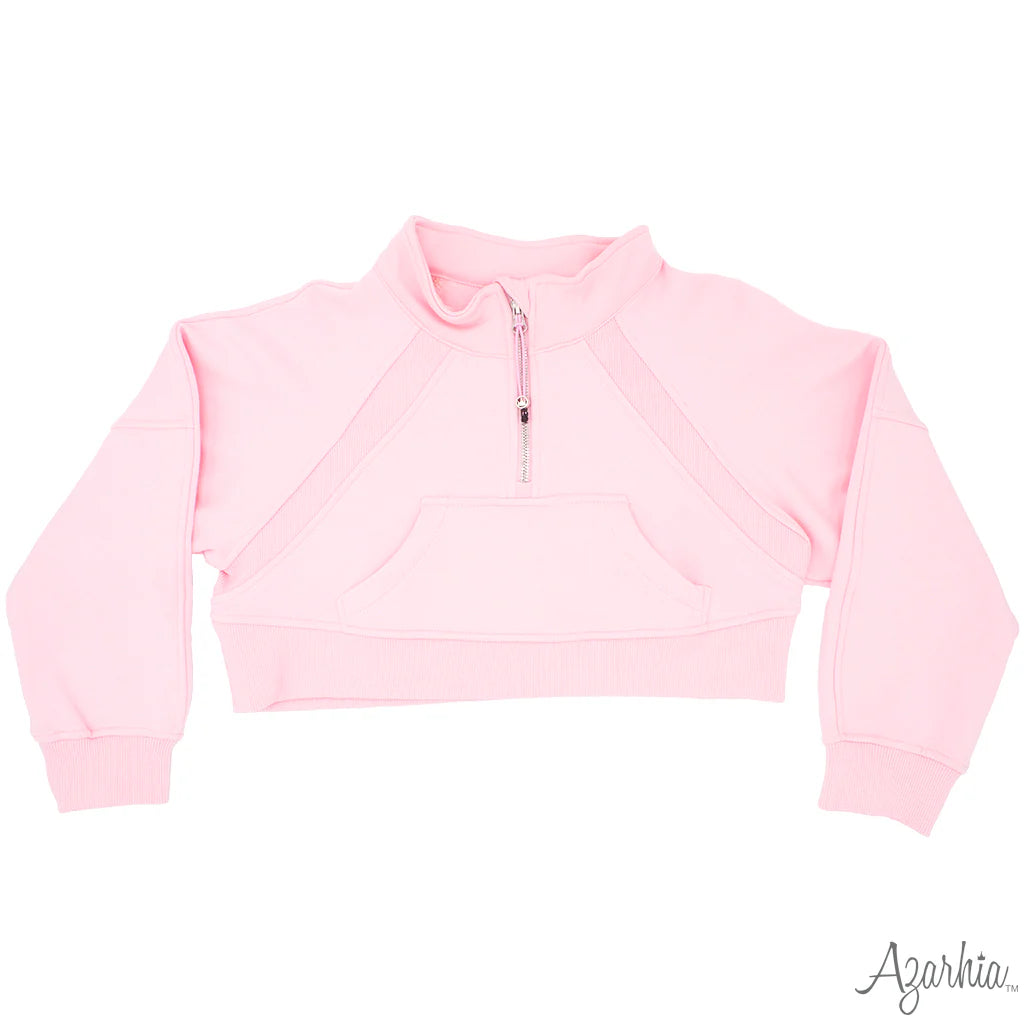 Oversized Cropped Quarter Zip- Light Pink