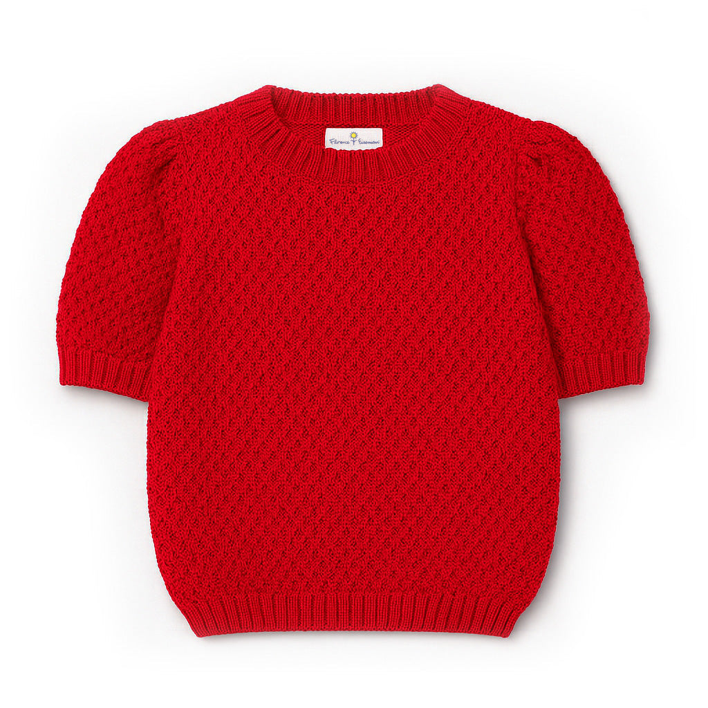 Shimmer Ruffle Sleeve Sequin Cheer Top- Crimson