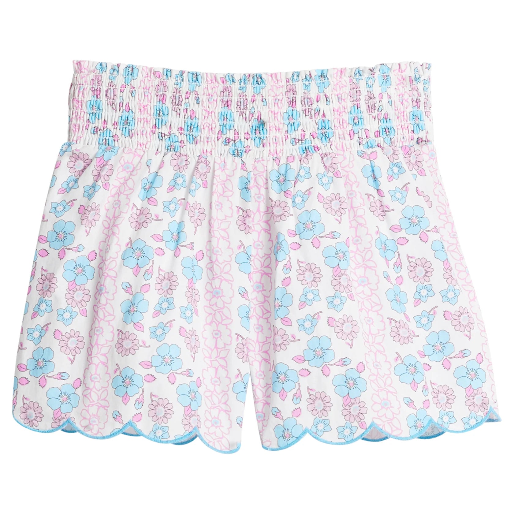 Shirred Scallop Shorts - Marguerite Floral Pink