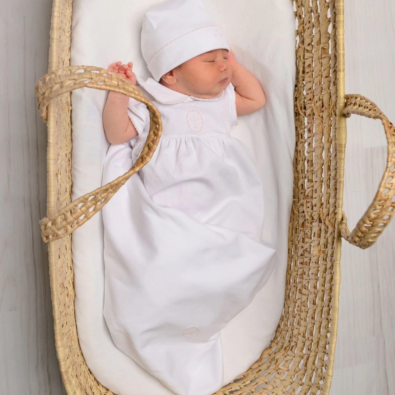 Blessed Embroidered Collared Short Sleeve Gown - Pink
