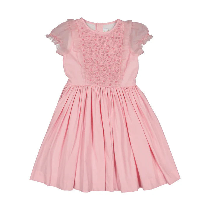 - Smocking: Classic [ink handmade smocked dress with organza short balloons sleeves (variant available in pink)