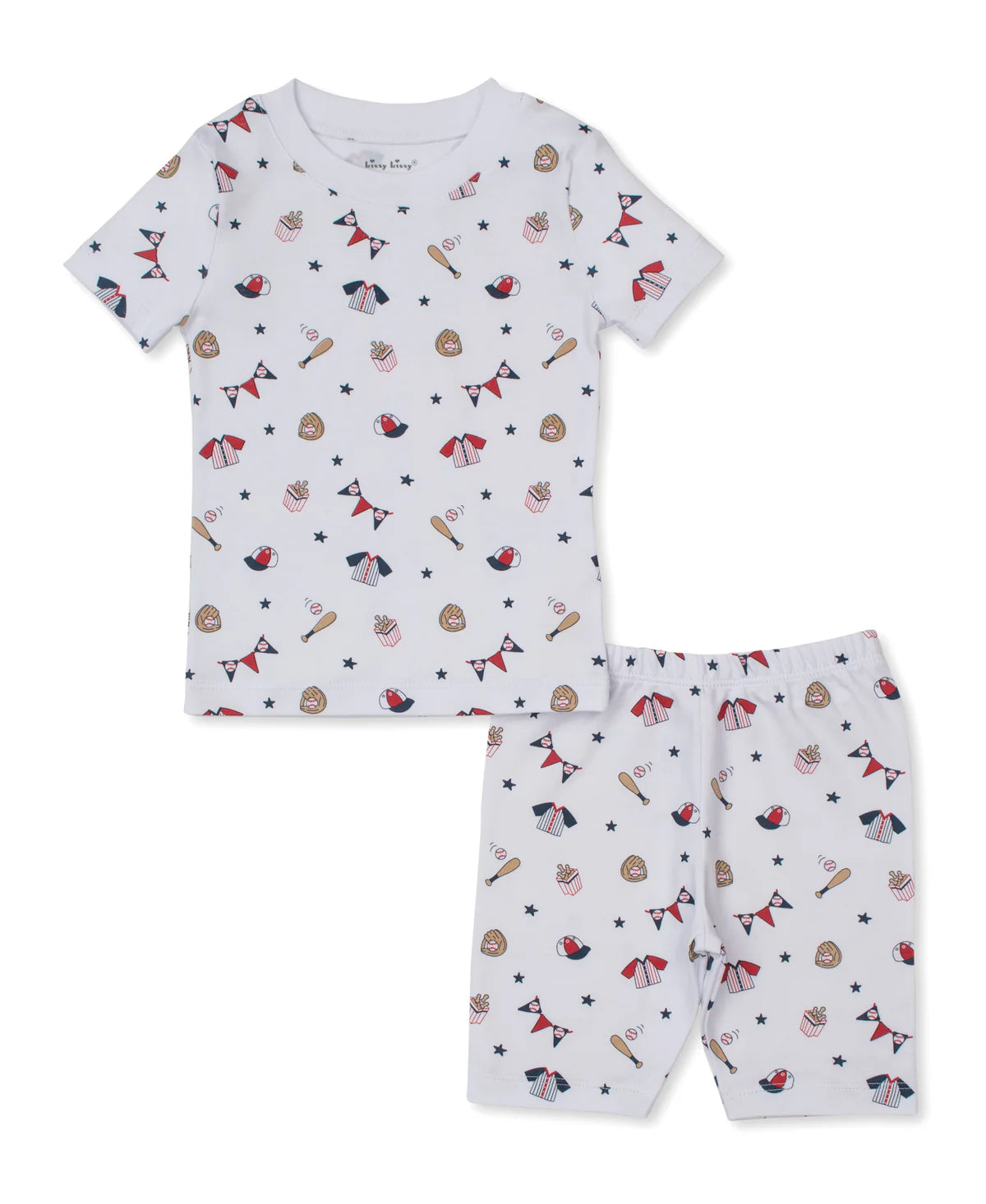 Drift into dreamland in our playfully patterned two piece pajama set. Featuring our fly ball print and made from super-soft Pima cotton, your precious baby is sure to get a good night's sleep!