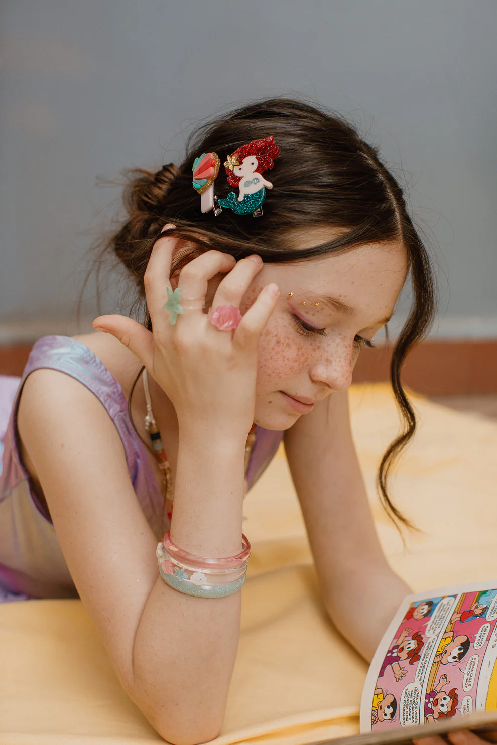 Transform your hair into a playful mermaid look with our Mermaid Underwater Glitter Red Seashell Hair clips. The combo of mermaid glitter and seashell clips adds a fun touch of whimsy to your style, making you the star of the sea or party!