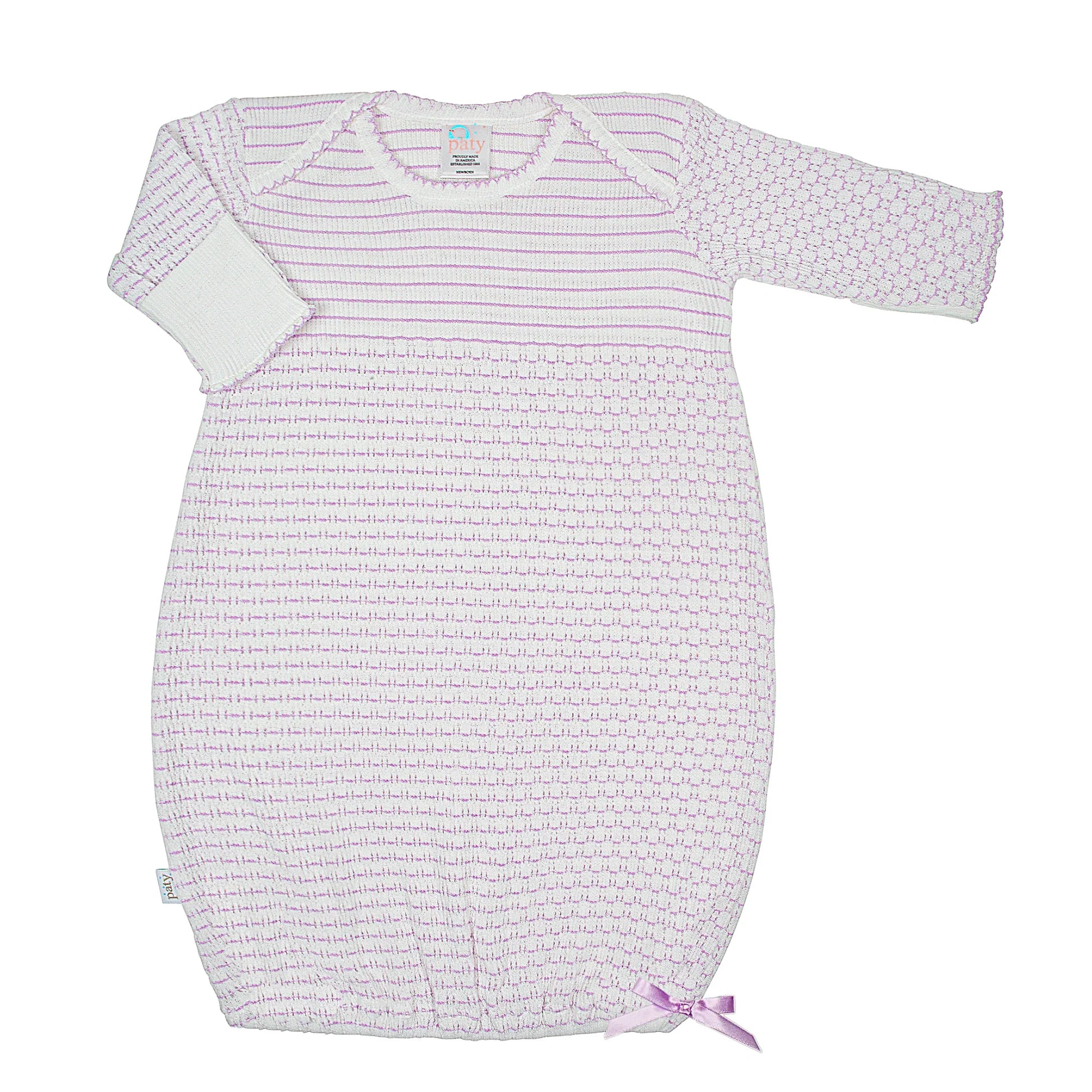 Paty Knit Overlap Shoulder Gown, (Pinstripe with Bow)