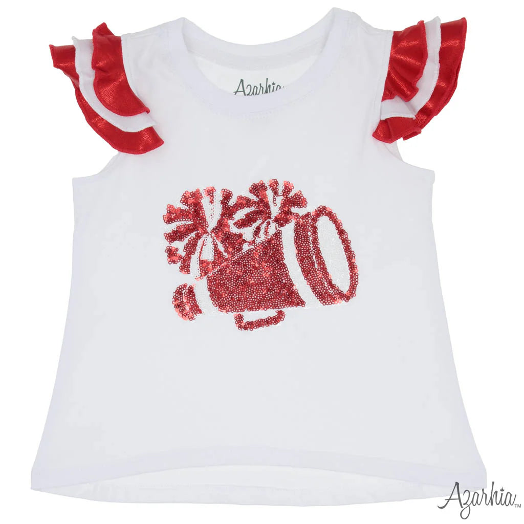 Shimmer Ruffle Sleeve Sequin Cheer Top- Crimson