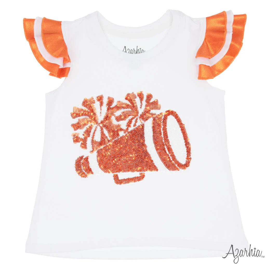 Shimmer Ruffle Sleeve Sequin Cheer Top- Orange